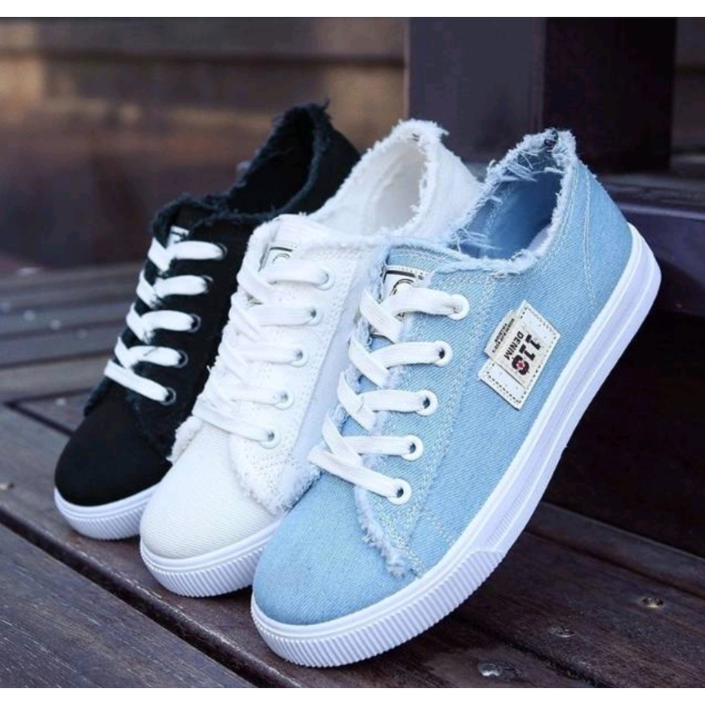 Jual Sepatu Kets Tali Denim 3 Warna Biru Hitam Putih Shopee Indonesia